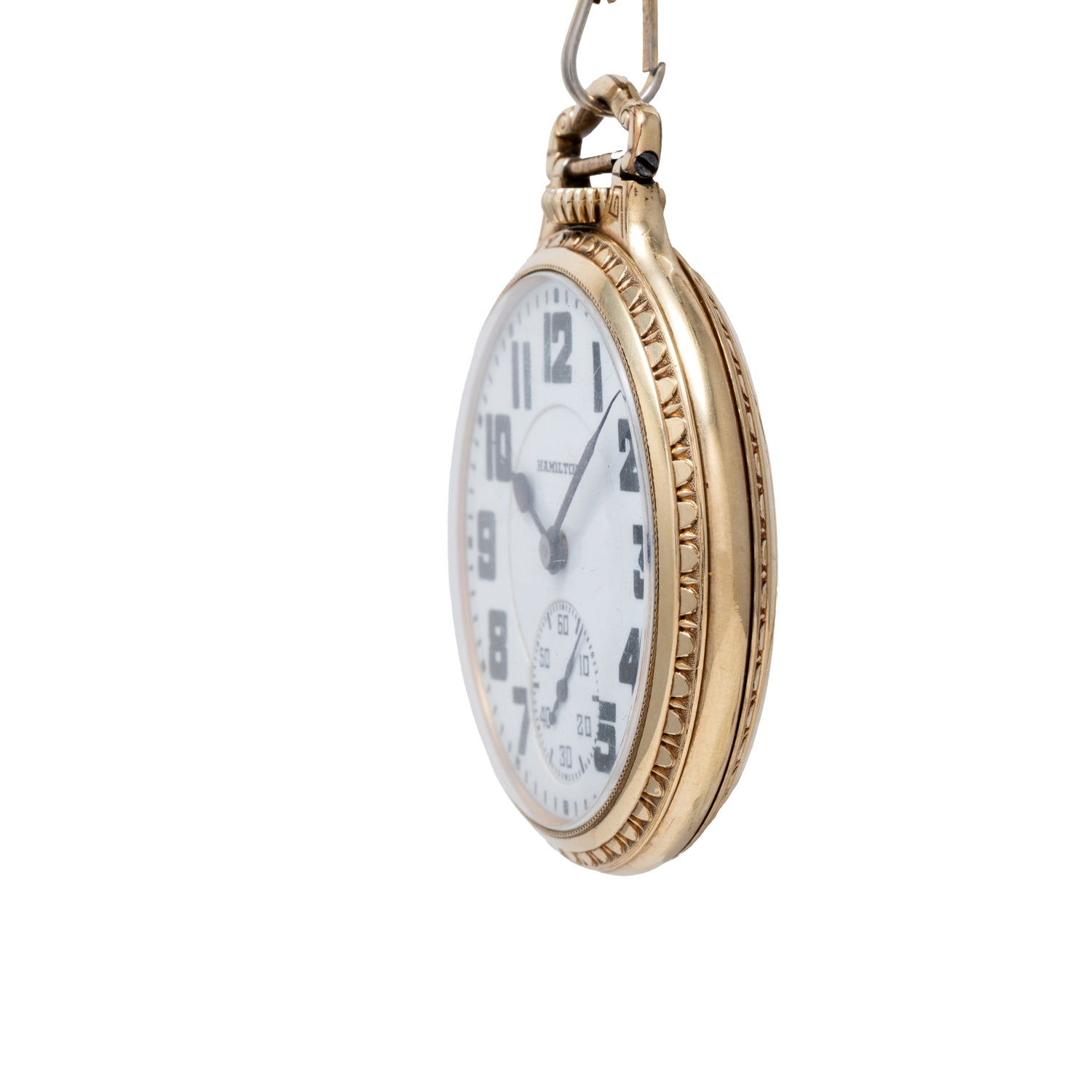 But what we have here is special: this is an incredible Hamilton gold filled pocket watch with a classic railroad style enamel dial and subsisidiary seconds register. This piece is accompanied with its chain and key set.